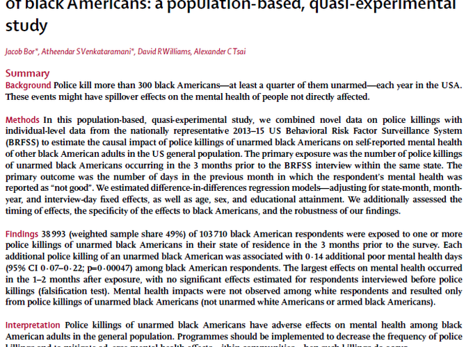 We reevaluate the claim from Bor et al. (2018: 302) that police killings of unarmed black Americans have effects on mental health among black American adults in the general population. The Mapping Police Violence data used by the authors misclassified 91 incidents involving black decedents who were either (1) not killed by police officers in the line of duty or (2) armed when killed. Correctly recoding these incidents decreased in magnitude all of the reported coefficients, and, more importantly, eliminated the reported statistically significant effect of exposure to police killings of unarmed black individuals on the mental health of black Americans in the general population. We caution researchers to vet carefully crowdsourced data that tracks police behaviors and warn against reducing these complex incidents to overly simplistic armed/unarmed dichotomies.