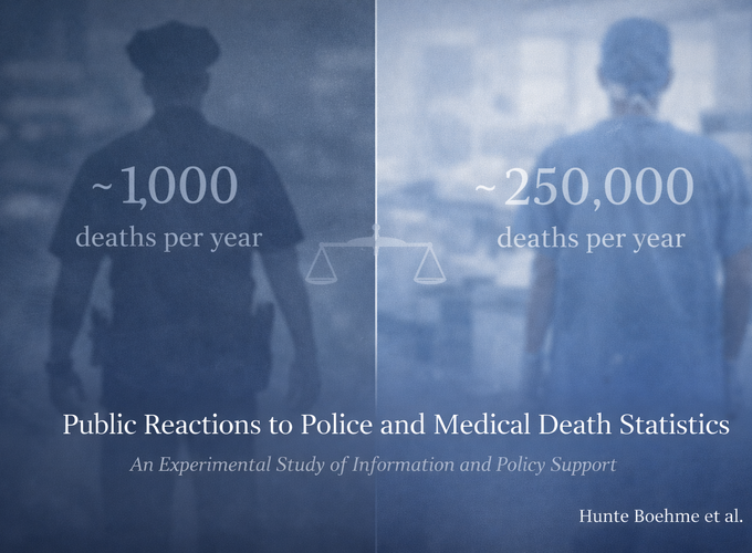Preventable deaths by medical professionals and law enforcement officers figure prominently figure in political discourse. While databases have emerged to track such deaths, little is known about the public’s concern over the prevalence of these deaths, the perceived adequacy of societal attention to these deaths, and which policies the public supports to attempt to reduce these deaths. This study presents findings from a pre-registered survey with an embedded information provision experiment, randomly assigning accurate statistics on police-caused and medical error deaths. Findings suggest that the public finds both death types concerning and a serious problem, and that there is not adequate attention from the media and politicians given to both death types. Those assigned medical death statistics, as well as combined medical death and police-caused death statistics, were significantly more likely to agree that medical error deaths pose a larger societal concern than police deaths. Implications for policy and research are discussed.